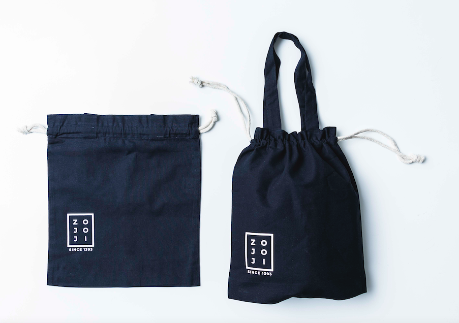 濃いめのネイビーベースの巾着トート